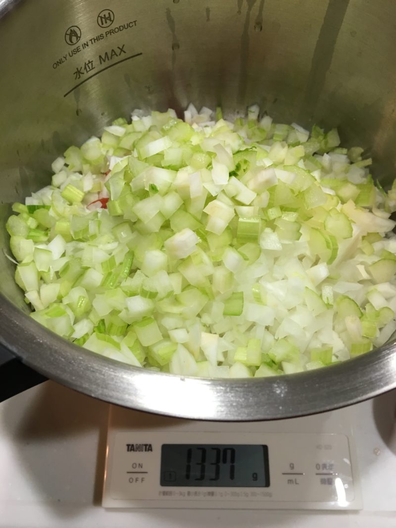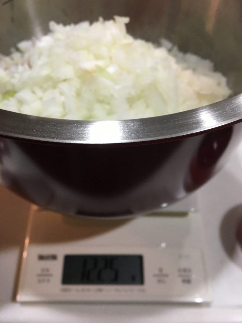 玉ねぎみじん切りを生のまま加えます。